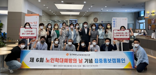 대구시 중구는 ‘제6회 노인학대 예방의 날’을 맞아 범국민적으로 노인학대에 대한 인식을 높이고 관심을 유도하기 위해 지난 24일 노인학대예방의 날 집중 홍보 캠페인을 개최했다.