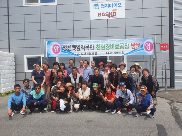 5월28일 33명의 회원이 충청북도 영동군 황간면에 위치한 친환경 맞춤형 비료제조 전문기업 천지바이오(대표 한기균)를 방문 견학하였다. 이 날 세미나는 품질향상 재배기술을 통하여 고품질 농업기술 실천하며 경쟁력을 가지기 위한 의미있는 시간이었다.