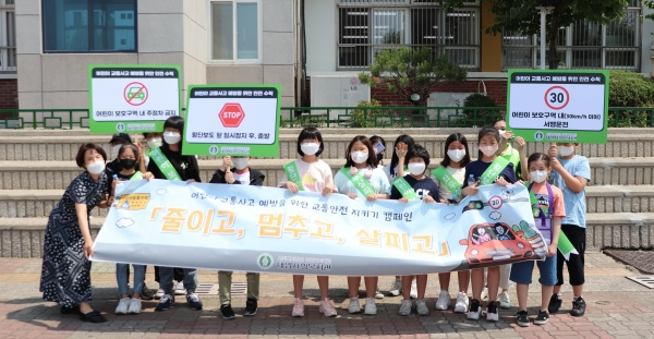 이번 캠페인은 남구 대명사회복지관 관계자들과 성명초등학교 러브홀릭 봉사단 등 16명이 합동으로 참여하여 어린이 보호구역 내 교통안전 수칙을 지역주민에게 홍보하였다.