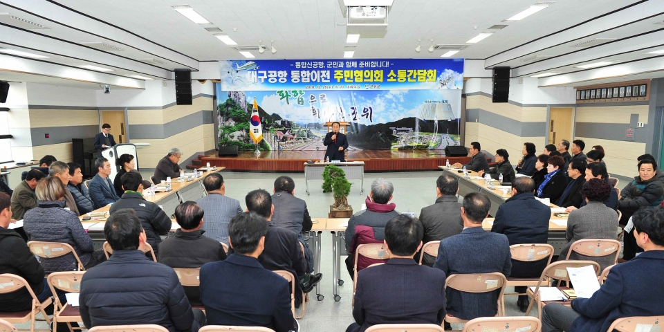 이 날 간담회는 김영만 군수, 배성기 기획감사실장과 김동백 통합공항추진기획단장, 주민협의회 등이 참석하였으며, 특히 김화섭?박한배 공동위원장을 비롯한 대구공항 통합이전 주민협의회 회원 50여명이 참석하여 소통의 자리를 가졌다.