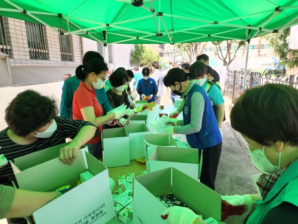 신암5동 주민자치위원회(위원장 이명순)와 각급단체 회원 30명은 지난 10일, 신암5동 어르신들에게 선물상자 920여 개를 포장했다.