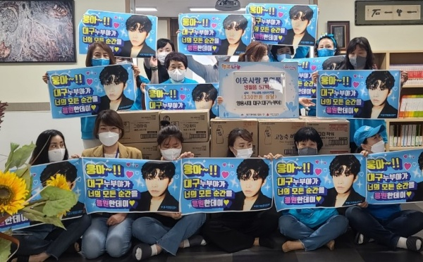 이날 ‘대구 영웅시대’팬클럽‘대구 누부야’회원들은 모자보호시설(자용모자복지관, 본마을빌라모자원)에 거주하고 있는 취약계층 한부모세대에 생필품을 지원 하면서“도움이 절실한 이웃들을 위해 앞으로도 지속적인 나눔을 통해 선한 영향력을 실천하겠다”고 말했다.