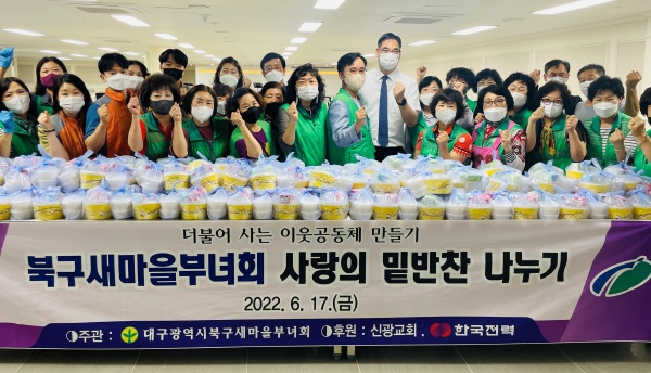 대구북구새마을부녀회는 코로나19 이전에 매월 1회 무료급식소를 운영하며 어르신들에게 식사를 제공해 오던 사업을 하였으나, 이제는 모여서 드시기 어려운 어르신들을 위해 집집마다 반찬을 만들어 나누는 행사로 대체하여 추진하고 있다.