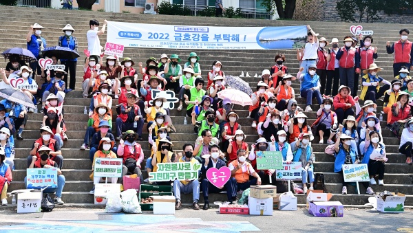 대구 동구청이 22일, (사)대구광역시동구자원봉사센터(이사장 홍창식) 단체협의회 봉사자와 함께 금호강 둔치에서 금호강 수질 개선 친환경 캠페인을 개최했다.