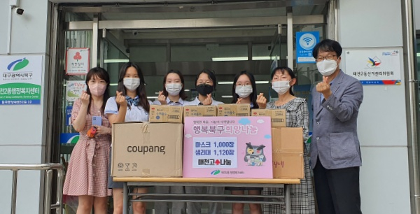 대구 북구 태전2동 소재 매천고(교장 우병영) 미술중점교과과정 학생들이 태전2동 행정복지센터(동장 김연철)를 찾아와 작품전시회 판매수익금으로 물품을 구입해 후원했다.