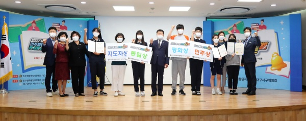 이어 류한국 서구청장도 “이번 대회를 통해 우리의 역사와 통일이념에 대해 생각해보는 의미있는 시간이 되길 바란다”면서 “우리 서구도 학생들이 자라나기 좋은 생활환경을 만들어 가는데 최선을 다하겠다”고 말했다.