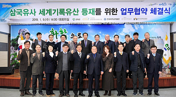 군위군(군수 김영만)을 비롯한 5개 기관은 9일 군위군청 대회의실에서 삼국유사 세계기록유산 등재를 위한 업무협약을 체결했다.