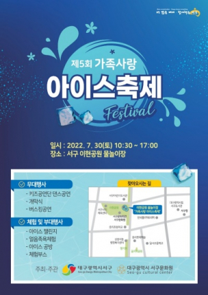 대구 서구청(구청장 류한국)은 오는 30일 10시30분부터 이현공원 물놀이장 일대에서 ‘제5회 가족사랑 아이스축제’를 개최한다고 26일 밝혔다.