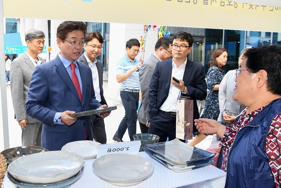 이날 판매행사에는 영호남 지역자활센터 30개소의 ▲ 자체 생산한 건고추, 장류, 참기름, 고구마 등의 농산물 ▲ 천연염색, 도자기 등의 수공예품 ▲ 여수 갓김치, 호두과자 등의 먹거리 ▲ 어린이 동반 고객을 위한 미니 초코파이 만들기 등의 무료 체험존도 운영해 도청직원 및 방문객과 신도시 주민들의 눈길을 사로잡았다.
