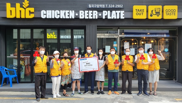 이날 현판식을 가진 착한가게는 BHC칠곡구암역점(대표 피주영)이며 매월 3만원의 정기기부를 통해 이웃과의 사랑을 나누는 동시에 주변 이웃의 복지 문제 해결에 적극적으로 동참할 예정이다.