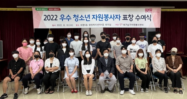 대구광역시 남구자원봉사센터(센터장 김봉기)에서는 지난 10일 오후 4시 대명5동 행정복지센터 4층 회의실에서 우수 청소년 자원봉사자 표창 수여식을 가졌다고 11일 밝혔다.