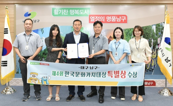 대구광역시 남구(구청장 조재구)는 한국문화가치연구협회가 실시한 ‘제4회 한국문화가치대상’에서 2020년과 2021년 우수상에 이어 올해는 특별상을 수상하는 쾌거를 이뤘다고 18일 밝혔다.