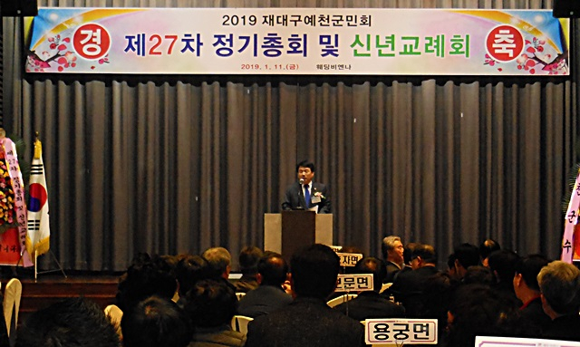 재구예천군향우회(회장 신장희)는 지난 11일 18시 30분 대구 비엔나웨딩 4층 컨벤션홀에서 ‘제27차 정기총회 및 신년교례회’를 개최했다