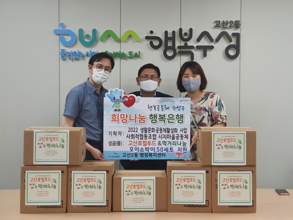 대구 수성구에 있는 사회적협동조합 시지마을공동체(대표 김영수)는 지난 23일 직접 만든 오이소박이 반찬 50세트를 고산2동 행정복지센터에 전달했다.