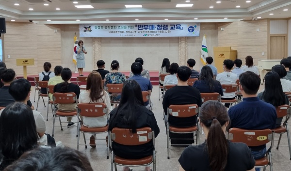 대구 북구청(청장 배광식)은 8월 26일(금) 구청 4층 대회의실에서 신규임용자 및 승진자를 포함한 직원 140여 명을 대상으로 2회에 걸쳐 ‘반부패·청렴 교육’을 실시했다.