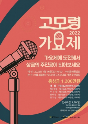 대구 수성구(구청장 김대권)는 오는 9월 3일 저녁 7시 대구 스타디움 서편광장에서 ‘2022 고모령 가요제’를 개최한다.