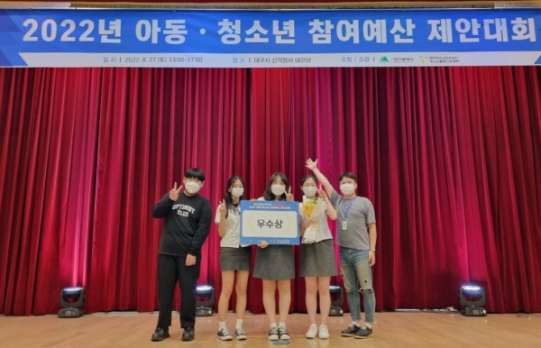 대구 동구청소년문화의집 아름드리에서 운영하는 동구 청소년참여위원회가 지난달 27일 대구시가 주최하고 대구청소년지원재단에서 주관하는 ‘2022년 아동·청소년 참여예산 제안 대회’에서 우수상을 수상했다. 2년 연속 수상이다.