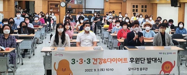대구 달서구(구청장 이태훈)는 3일 구청 충무관에서 「3·3·3건강&다이어트 후원단」 발대식을 개최했다.