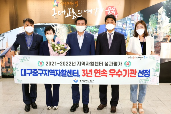 대구 중구지역자활센터(센터장 박영미)가 보건복지부에서 실시한 ‘2022년 전국 지역자활센터 성과평가’ 결과 3년 연속 우수기관으로 선정되는 성과를 이뤘다.