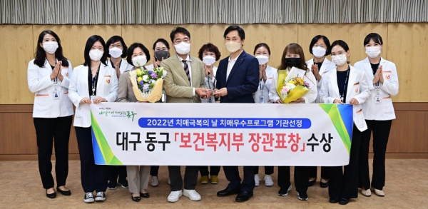 대구 동구청(구청장 윤석준)이 운영하는 동구보건소 치매안심센터가 2022년 보건복지부가 주관하는 ‘제15회 치매 극복의 날’ 기념행사에서 치매 우수프로그램 운영분야 우수기관으로 선정돼 보건복지부 장관 표창을 수상했다.