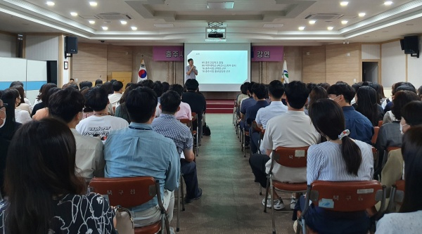 | ↑↑ 충주시 유튜브 전문관 김선태 주무관을 초빙하여 직원 혁신 교육을 개최하였다. |