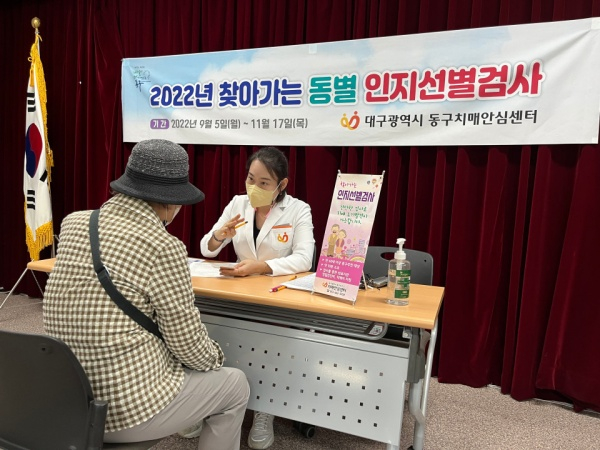 | ↑↑ 대구 동구보건소 치매안심센터는 만 75세 이상 치매 고위험군을 대상으로 11월17일까지 22개 행정복지센터를 모두 순회, 치매선별검사를 시행할 예정이다. |