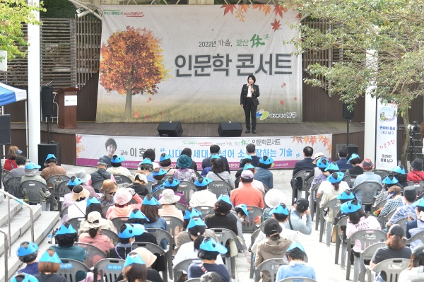 대구 남구청은 ‘지붕 없는 학습의 장’으로서 앞산을 강의장으로 활용한 ‘소통과, 쉼, 음악’이 있는 인문학 프로그램 「2022년 남구 앞산 休(휴) 인문학 콘서트」를 9월 24일(토) 오후 3시 대덕문화전당 야외공연장에서 개최하였다.