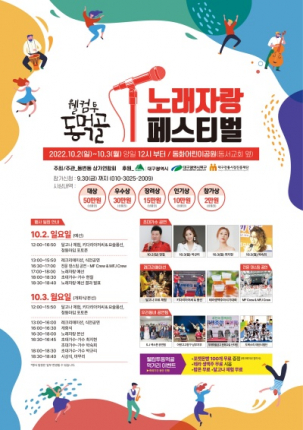 대구 북구청(청장 배광식)은 10월 2일, 3일 이틀간 동변동 동화어린이공원에서 동변동 상가연합회 주관 ‘웰컴투동먹골 노래자랑 페스티벌’이 열린다고 28일 밝혔다.