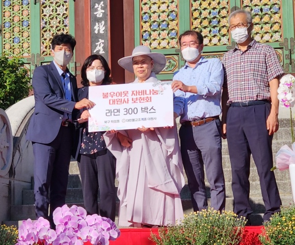 | ↑↑ 북구 학정동 대원사, 사랑의 라면 기탁 |