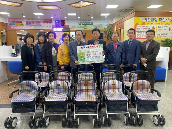 대구광역시 서구 평리1동 소재 평상새마을금고(이사장 장기덕)에서는 10월 19일(수) 평상새마을금고 1층에서 거동이 불편해 외부 활동이 어려운 홀몸 어르신에게 손과 발이 되어주는 사랑의 실버카 전달식을 가졌다.