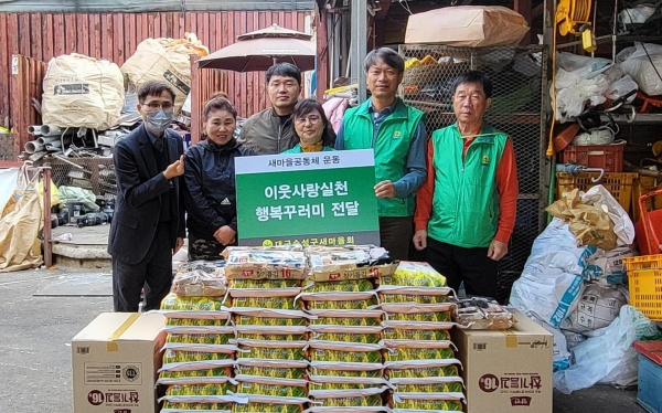 대구 수성구 새마을지도자협의회(회장 김연오)와 새마을부녀회(회장 권순애)는 지난 25일 수성 2.3가동에 있는 형제고물상을 방문해 폐지를 주우며 어렵게 살아가는 가정을 위해 써달라며 150만 원 상당의 쌀과 김을 전달했다.