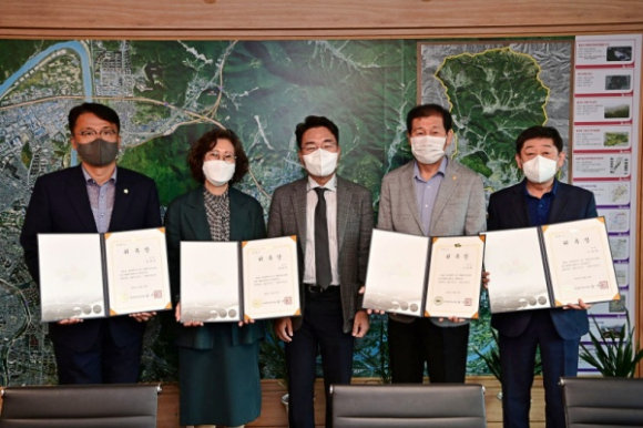 | ↑↑ 대구 동구청(구청장 윤석준)은 지난 24일, 주민들에게 만족스러운 행정 서비스를 제공하기 위해 총 4명(왼쪽부터 김상호, 김명은, (가운데 윤석준 대구 동구청장) 조경래, 조성원 위원)의 행정서비스헌장 심의위원을 위촉했다. |