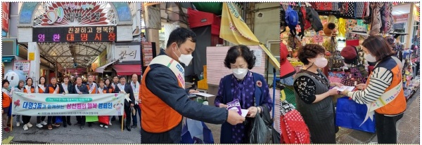 | ↑↑ 대구 남구 대명3동 지역사회보장협의체는 대명3동의 안정된 복지재원을 마련하여 복지사각지대를 지원하고자 “대명3동과 함게하는 삼천원의 행복” 모금사업을 하고 있으며 대명시장에서 홍보 캠페인을 가졌다 |