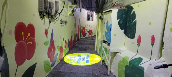 “큰장네거리 뒤편 골목 담벼락에 벽화가 그려졌어요. 화사하게 밝게 변한 골목, 골목관광의 즐거움을 널리 알립니다.”