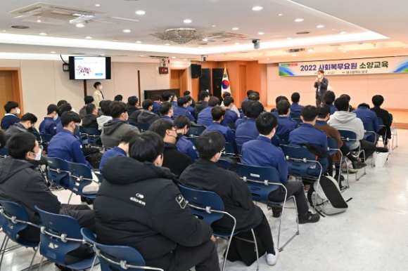 대구광역시 남구청(구청장 조재구)은 지난 5일, 남구청 드림피아홀에서 사회복무요원 100여 명을 대상으로 소양교육을 실시하였다고 7일 밝혔다.