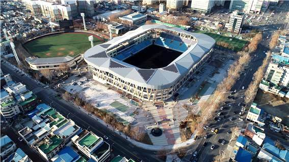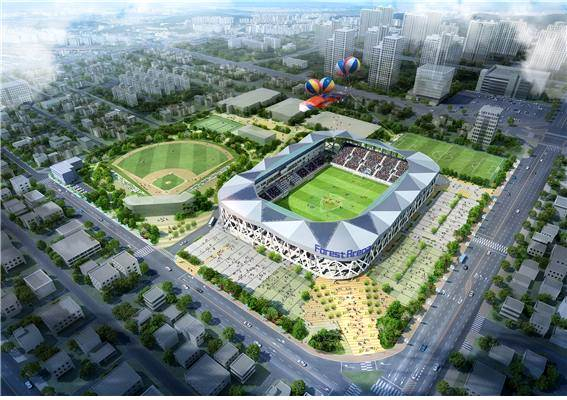 대구FC의 새로운 지평을 열어줄 축구전용경기장이 지난 19일 완공됐다. 시민운동장 내(북구 고성동3가)에 건설된 대구FC 축구전용경기장은 연면적 25,472㎡에 지상3층, 관람석 12,415석 규모로 총사업비 515억 원이 투입됐다.