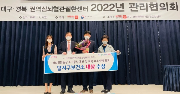 대구 달서구(구청장 이태훈)는 7일 대구경북 권역심뇌혈관질환센터에서 주최한 심뇌혈관질환 홍보 및 교육 우수사례 공모에서 대상을 수상했다고 밝혔다.