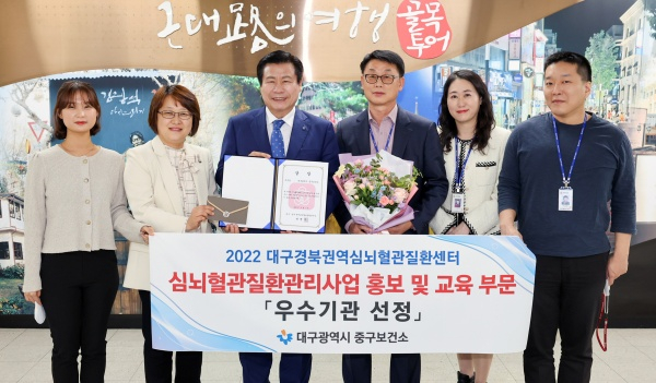 대구시 중구보건소는 「2022년 심뇌혈관질환 조기증상 홍보 및 교육 우수사례 공모전」에서 우수보건소로 선정되었다.