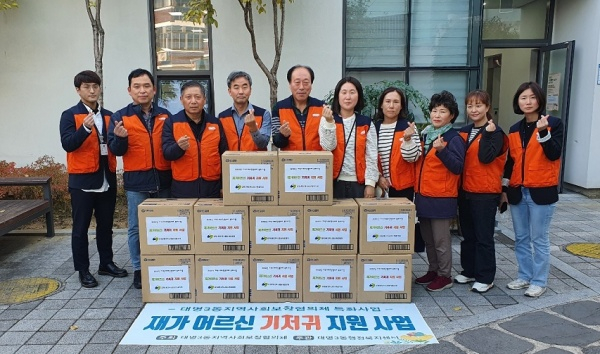 대구광역시 남구 대명3동 지역사회보장협의체는 지난 2일 2022년 특화사업으로 관내 저소득 재가어르신 중 거동 불편 세대를 방문하여 기저귀를 전달했다고 7일 밝혔다.