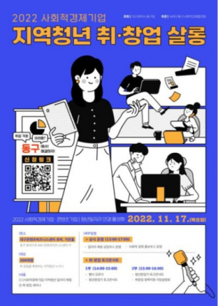 대구 동구청(구청장 윤석준)은 오는 17일, 대구콘텐츠비즈니스센터 가온홀에서 ‘사회적경제-지역청년 취·창업 살롱’ 행사를 개최한다.