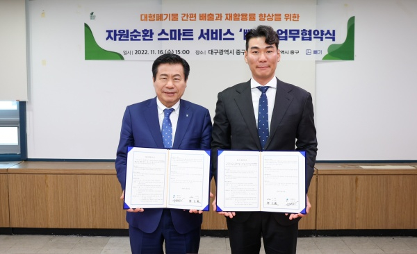 대구시 중구(구청장 류규하)는 지난 16일 대형폐기물 간편 배출 서비스 도입을 위해 ㈜같다와 업무협약을 체결했다.