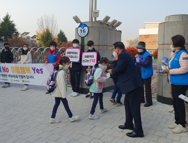 대구 내당4동주민센터(동장 양규석)는 아동학대 예방주간을 맞이하여 11월 16일 경운초등학교 앞에서 내당4동파출소, 경운초등학교와 함께 아동학대 예방과 아동보호에 대한 지역주민들의 관심을 촉구하는 캠페인을 펼쳤다.