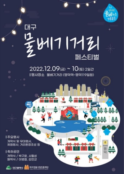 대구광역시 남구(구청장 조재구)는 오는 12월 9일부터 10일까지 명덕역 물베기거리(명덕역~명덕119일원)에서 ‘제1회 대구 물베기거리 페스티벌’을 개최한다고 2일 밝혔다.