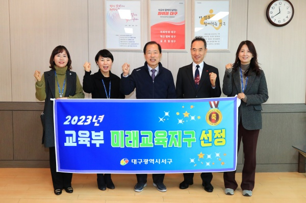 대구 서구청은 지난 5일 2023년 교육부 미래교육지구 공모에 최종 선정되어 『다정다감 학교 밖 초등돌봄 교실』, 지역아동센터 『청소년 B·T·S 사업』,『다행마을 방과후 학교』,『청소년 진로설계를 위한 학부모 특강』 등의 미래교육지구 사업을 추진해 나갈 것이다.