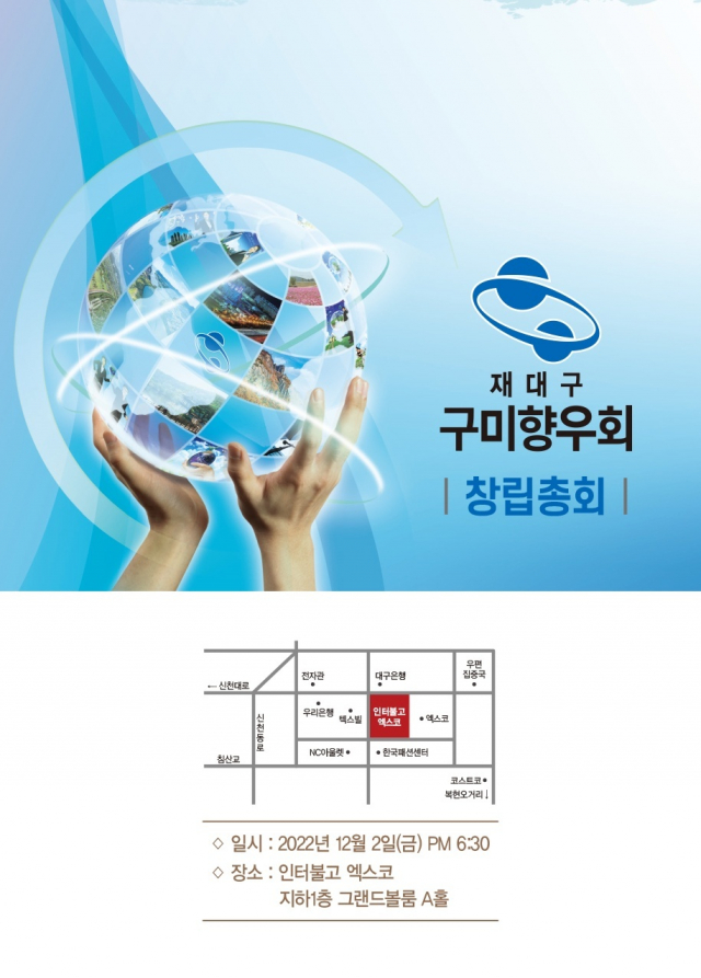 지난 12월2일 저녁6시30분 엑스코 인터불고 컨벤션 홀에서 재대구구미향우회 창립 총회가 있었다.