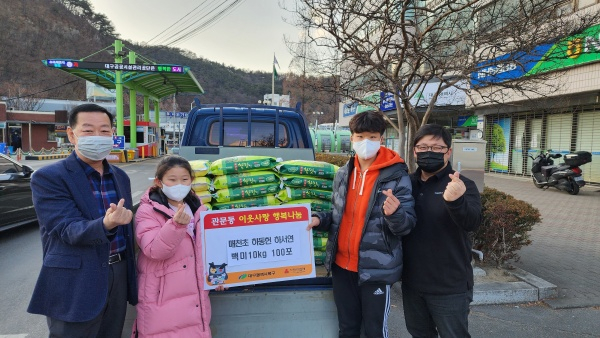 | ↑↑ 북구 관문동, 하동헌, 하서연 학생이 백미 100포 기탁 |
