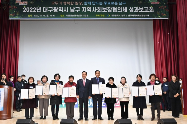 대구광역시 남구청(구청장 조재구)은 지난 19일(월) 13시, 낙동강승전기념관 대강당에서, 지역복지사업 추진성과 공유를 위한 『2022년 지역사회보장협의체 성과보고회』를 개최했다고 21일 밝혔다.