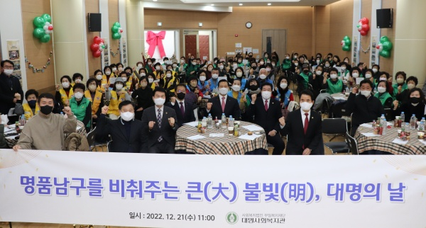 『명품남구를 밝혀주는 큰(大) 불빛(明)』 송년행사는 대명사회복지관에서 1년 동안 지역사회를 위해 헌신적으로 봉사하고 따뜻한 이웃사랑을 실천한 자원봉사자 및 후원자들을 모시고 감사의 뜻을 전하고 격려하기 위한 자리이다.