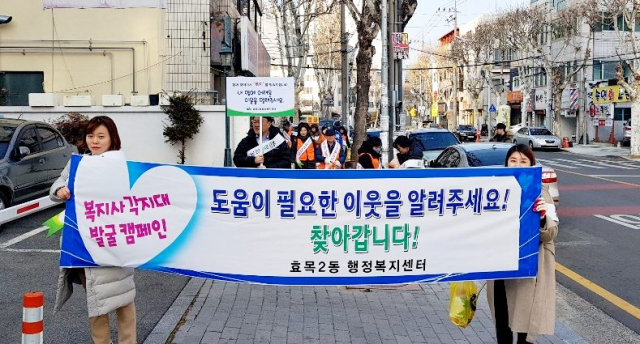 캠페인활동에는 동행정복지센터 직원, 복지통장 및 통장협의회 위원 등 복지발굴단 30여명이 함께 협조해, 복지사각지대 발굴을 위한 홍보 리플렛과 홍보물품(수건, 손난로 등)을 배부했다.
