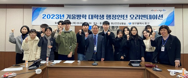 대구 중구청(구청장 류규하)은 지난 5일 중구청 7층 재난안전상황실에서 「2023년 겨울방학 대학생 행정인턴 오리엔테이션」을 개최했다.